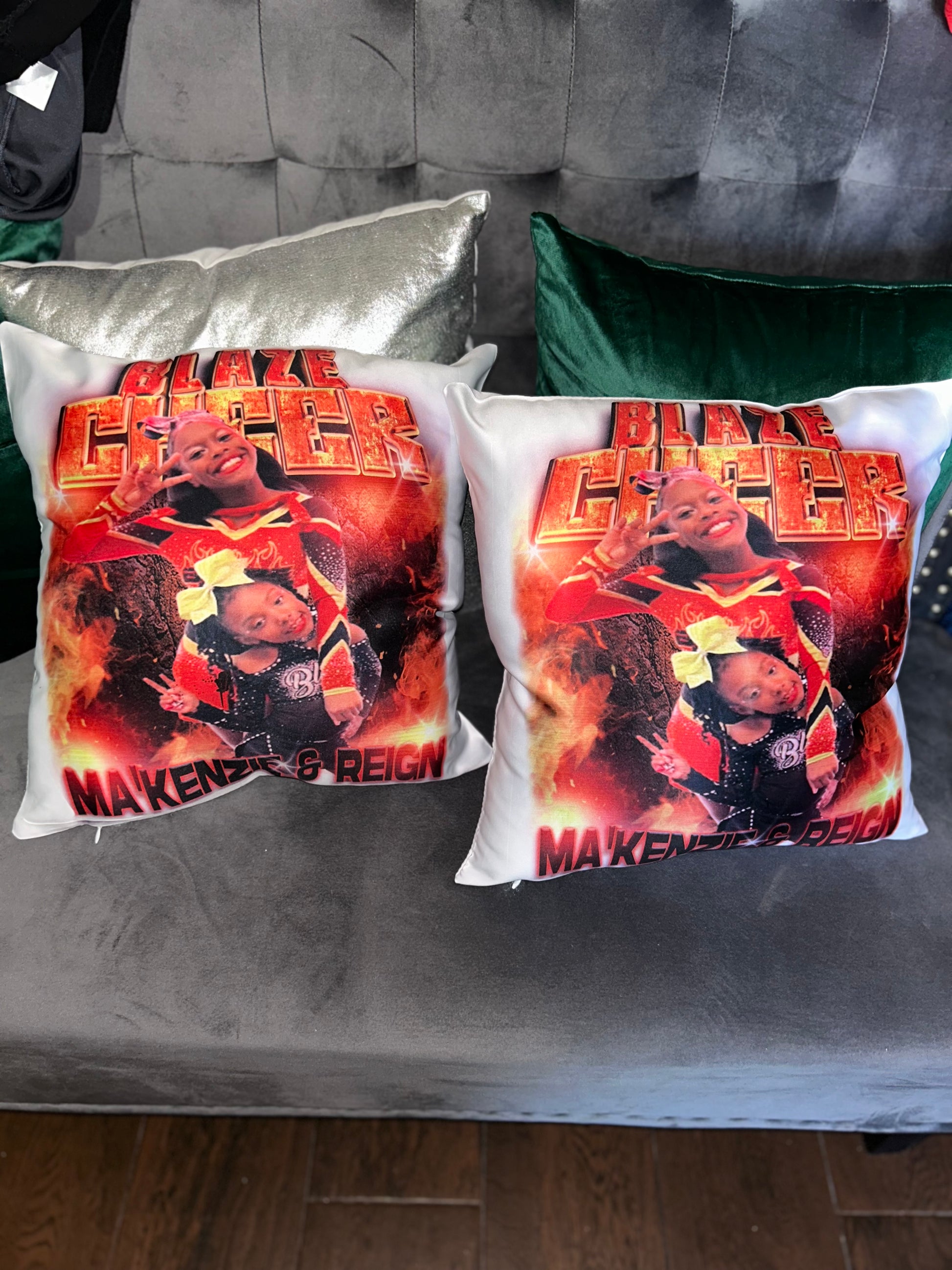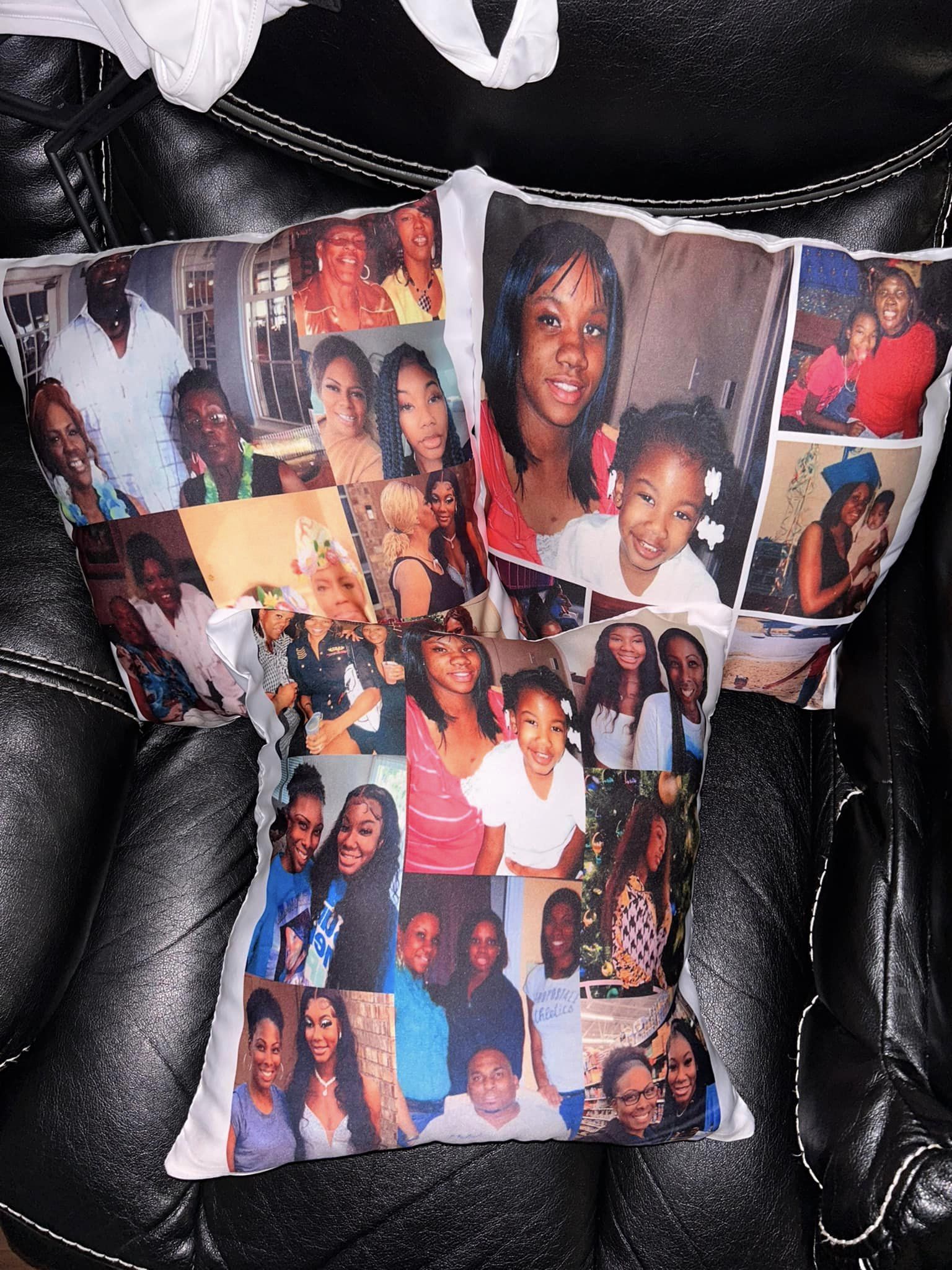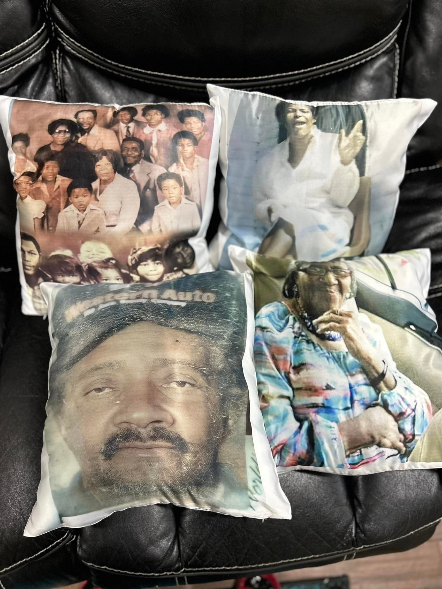 16x16 pillow that comes stuffed with cushion. Front and back option. If you are wanting more than one image I highly recommend for you to create the collage then send over. If you are wanting to add a memorial quote to back please state (MEMORIAL) in the below. Great for wedding gifts, teams, memorial, and anniversary .