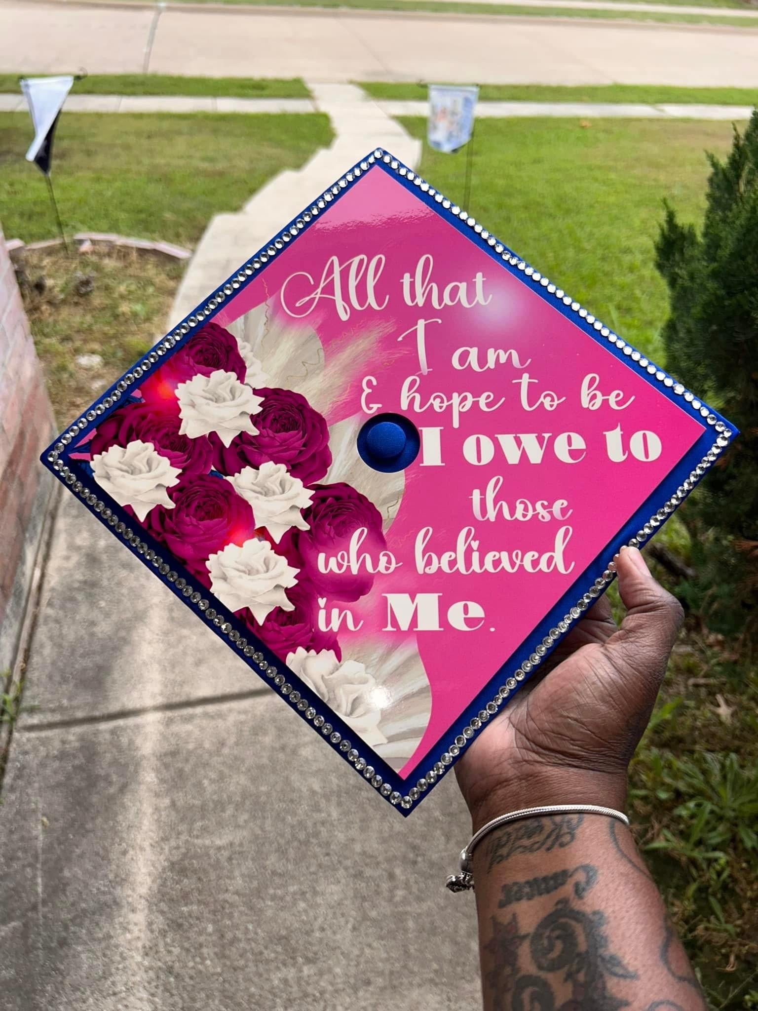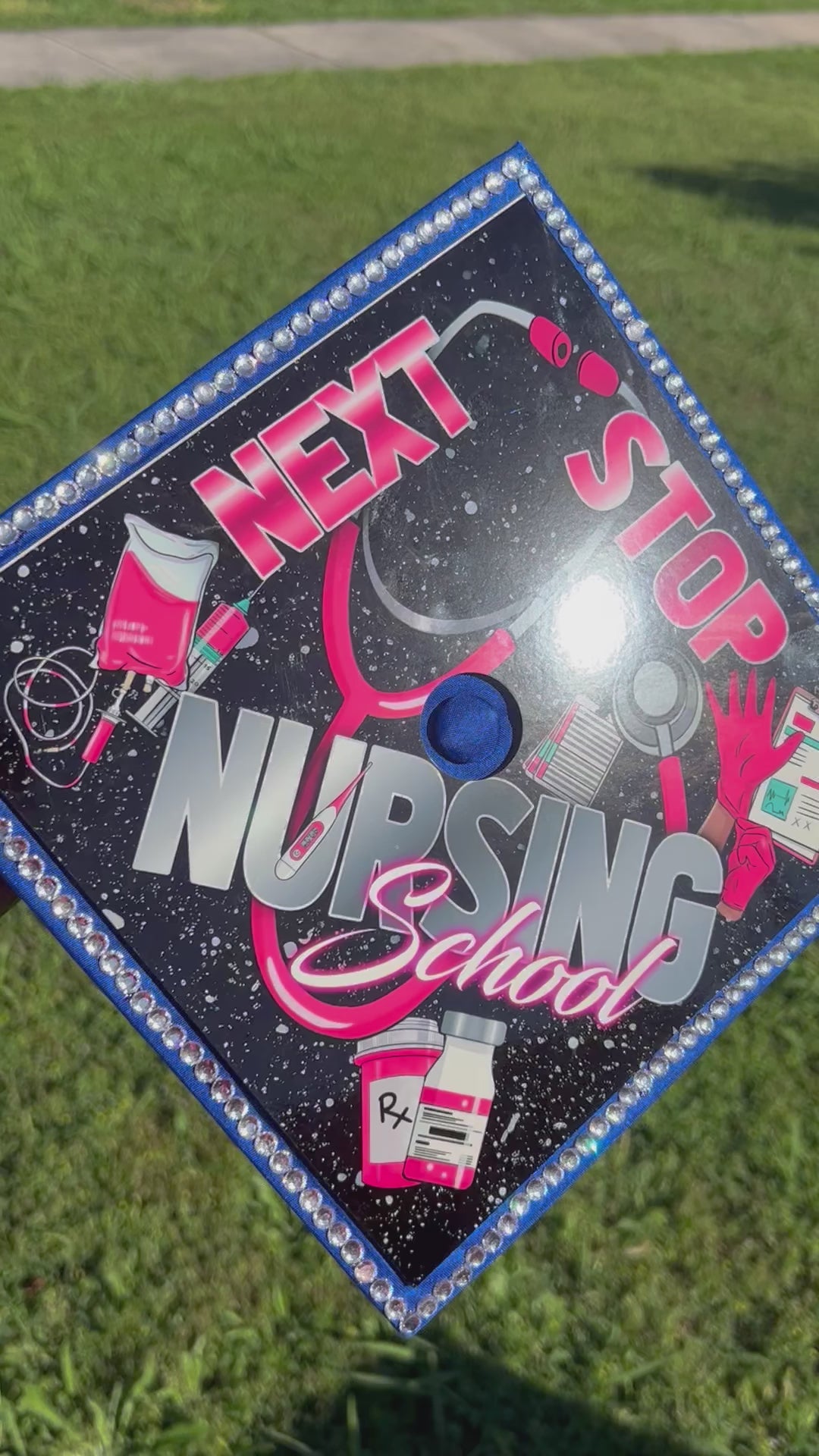 These come as toppers with adhesive tape on back you can place the topper on your cap that was given to you by your school. If you are wanting us to purchased your add in add stones it will be an additional price. NO RETURNS, CANCELLATIONS, REFUNDS OR EXCHANGES.
