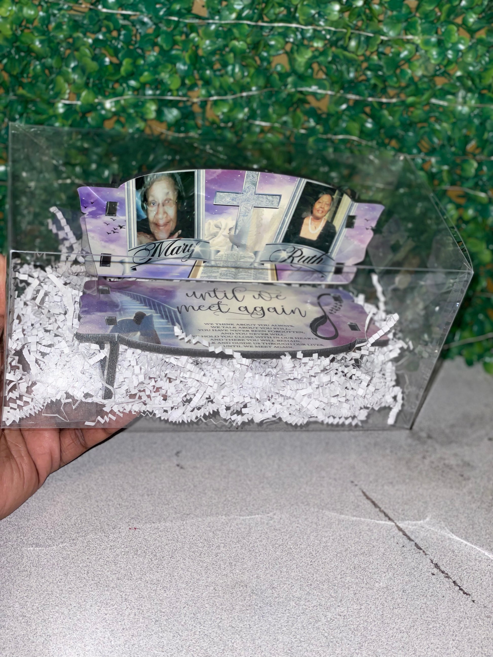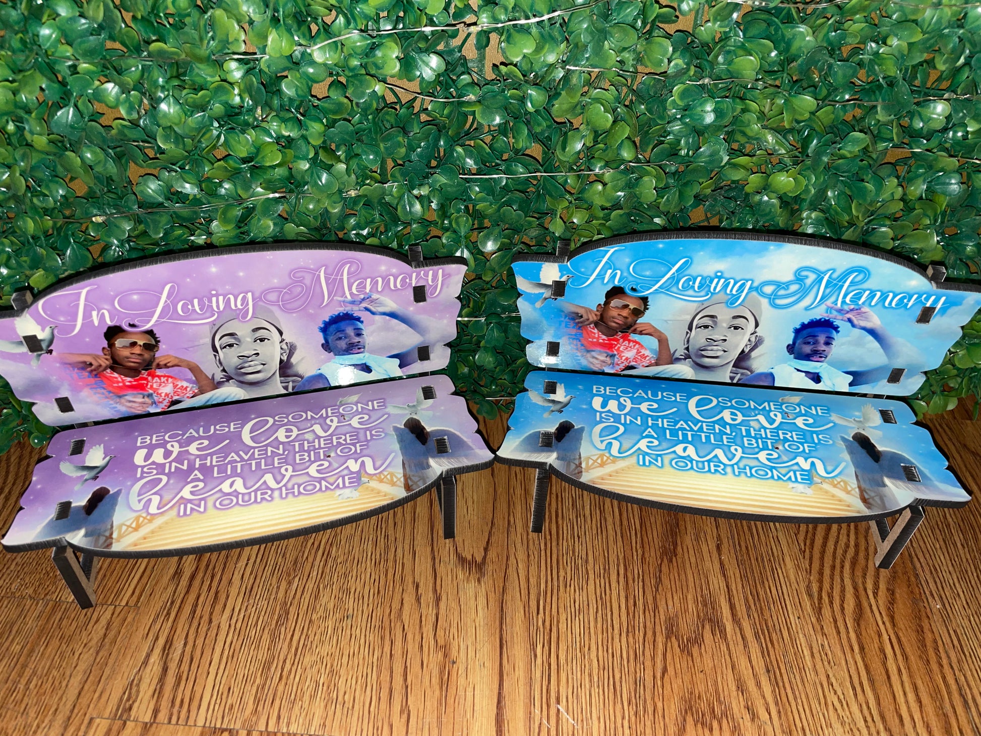 Small table top memorial bench. Great to place on your shelf, tabletop or desk. You can add up to 3 image or words as you please. A draft will be sent to your email or number that is on your order form. You have up to 24hours to reply to the draft before your order is pushed to the end of orders.